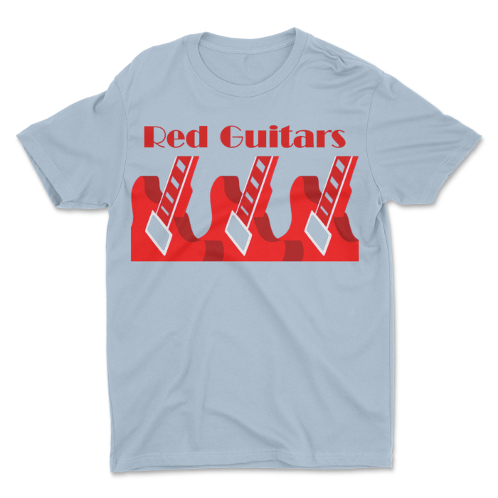 Three Red Guitars: based on the Good Technology (1982-1984) CD sleeve design. Printed on Gildan Heavy T-Shirts using water-based ink, which is PVC and solvent free to help reduce plastic pollution – £16