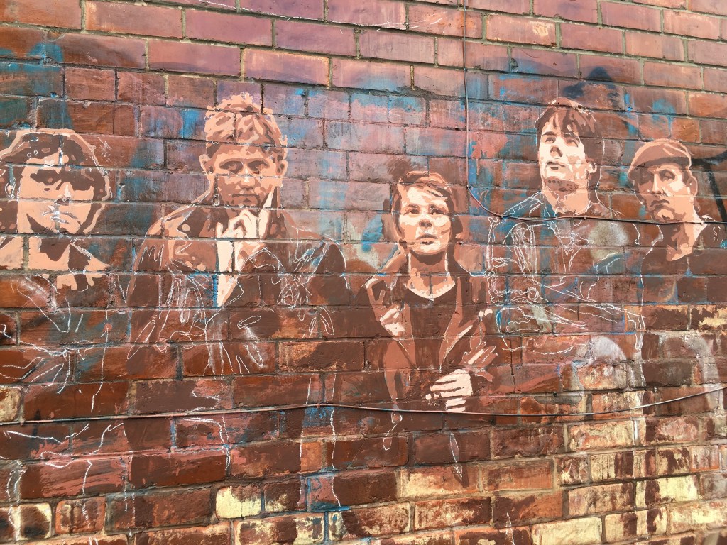 As we were rehearsing for our Slow to Fade reunion tour last year a mural appeared just off Princes Avenue, Hull. Painted by Ed Ullyart the mural celebrates Hull music, it looks fantastic, still as good as new.