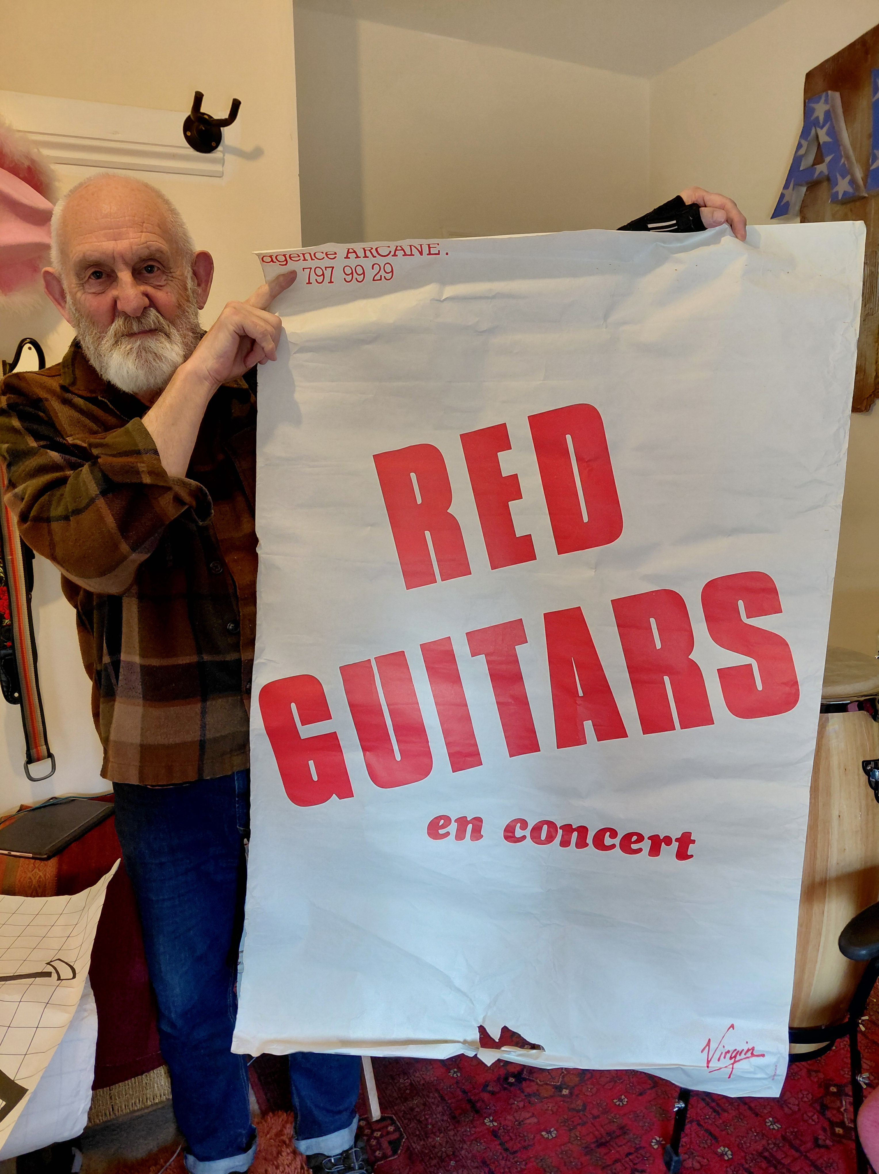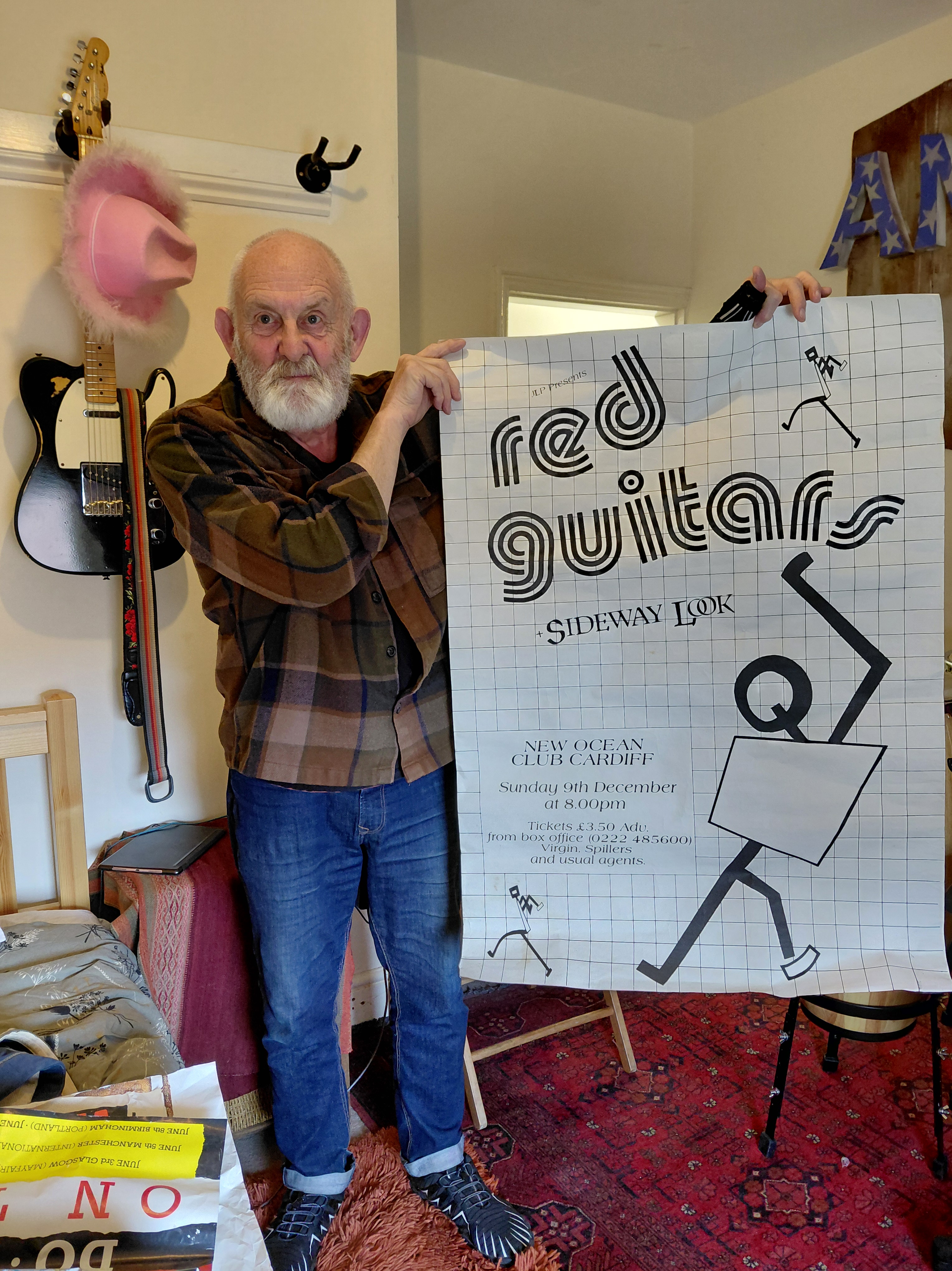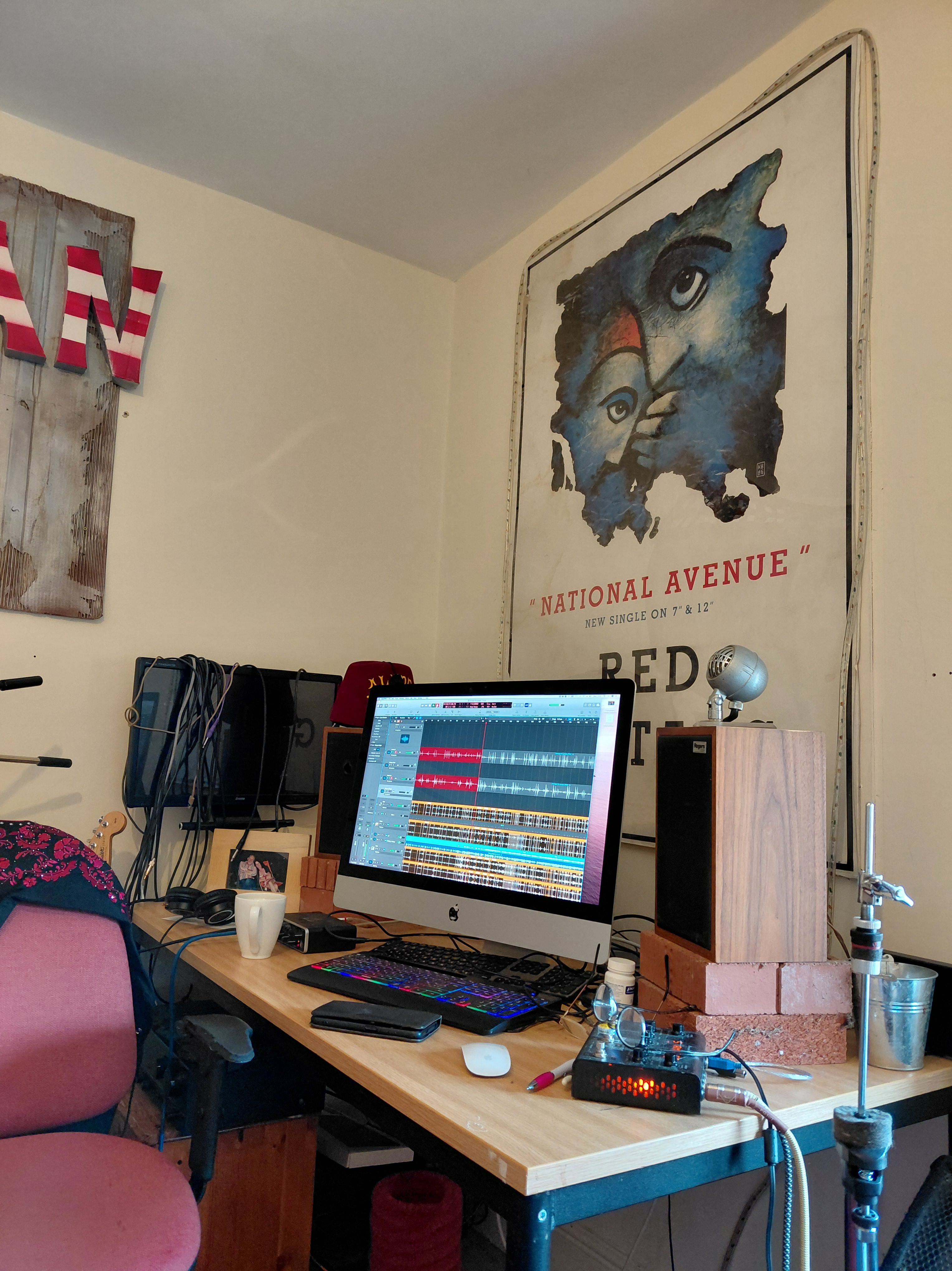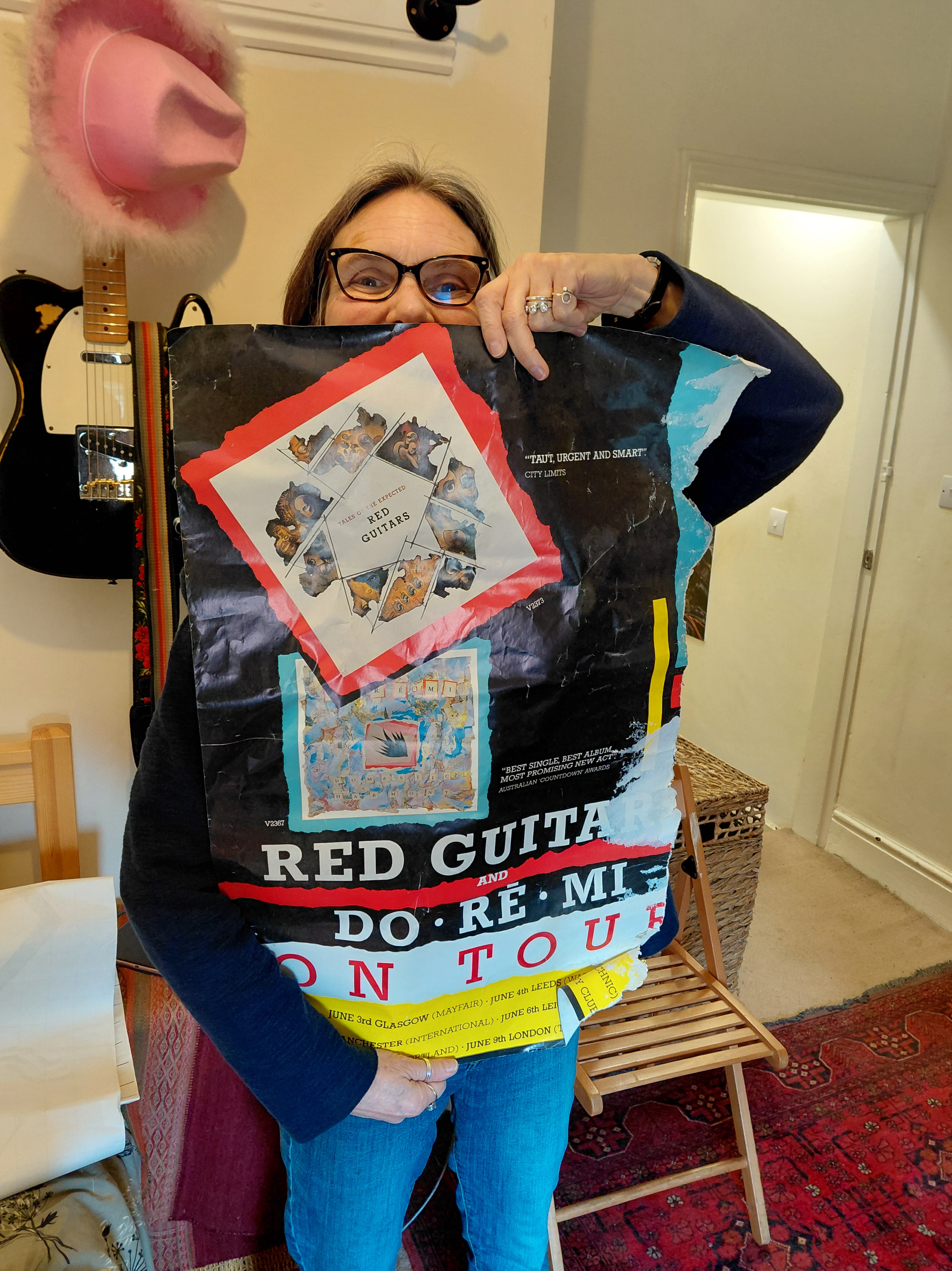 This week’s recording at Rowley Towers – three of us tucked into John’s cake while Hal was in Cape Town, found a great stack of old gig posters, Pepper had a nap, more tea, more cake, did some mixing .. and the congas are in the can!