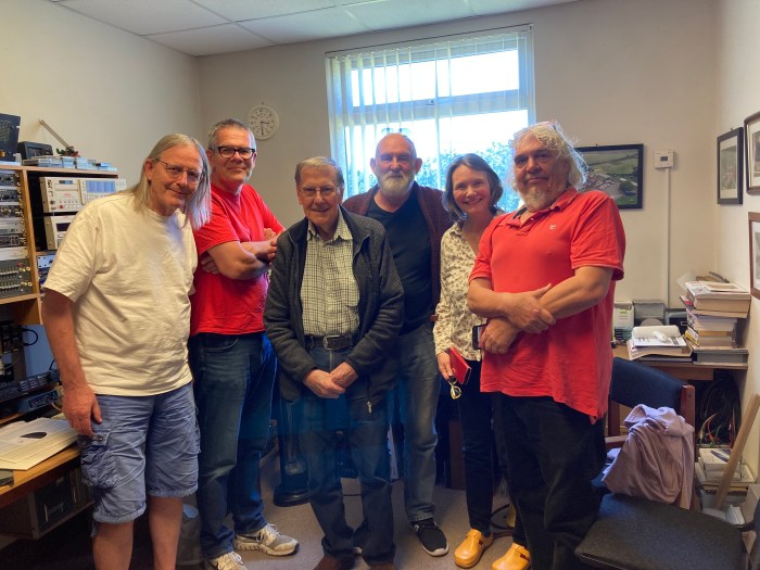 In 1983 we went into Fairview Studio, owned by Keith Herd, where we recorded all our singles and album Slow to Fade. This was so exciting for all of us – a life changing time. Yesterday, 40 years on we had a lovely afternoon with Keith – a great catch up over pizza and cake in his garden in the sunshine. Here we are in Keith’s mastering studio, where we listened to music and looked through the original 1983 studio diary.