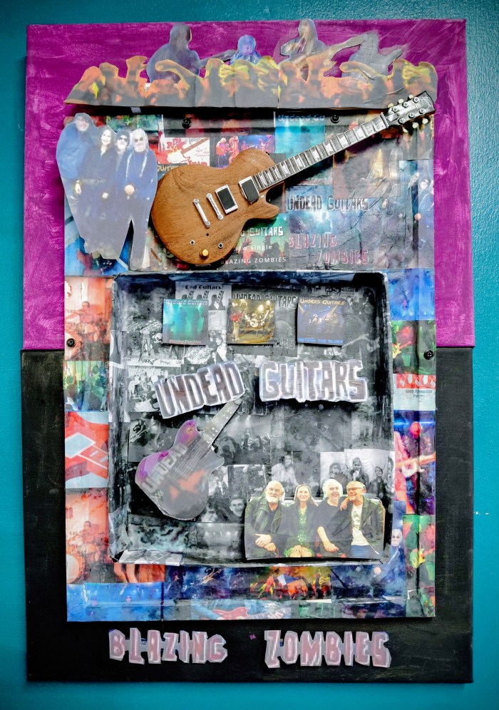 I have over the last few months been reflecting on my love of great rock groups. Initially my involvement with a local group Plauge 66 when I was 16 was the catalyst. Going on to seeing Cream and the Nice in Hull. Other great groups followed, and I have recorded this with a series of collages celebrating their influence not only on me, but a whole generation. This influence still carries on today with the amazing musical ability of the Undead Guitars, the last collage in my series.